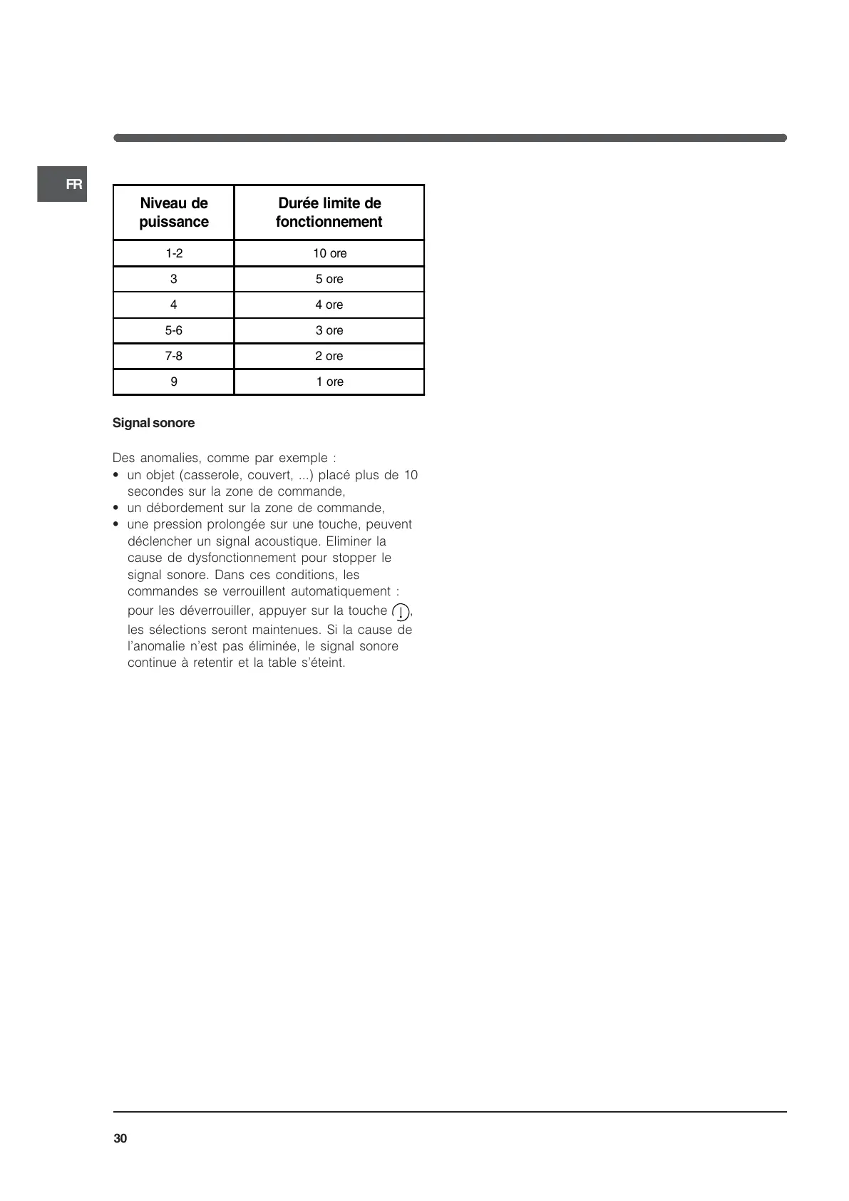 lanomalie nest pas éliminée, le signal sonore