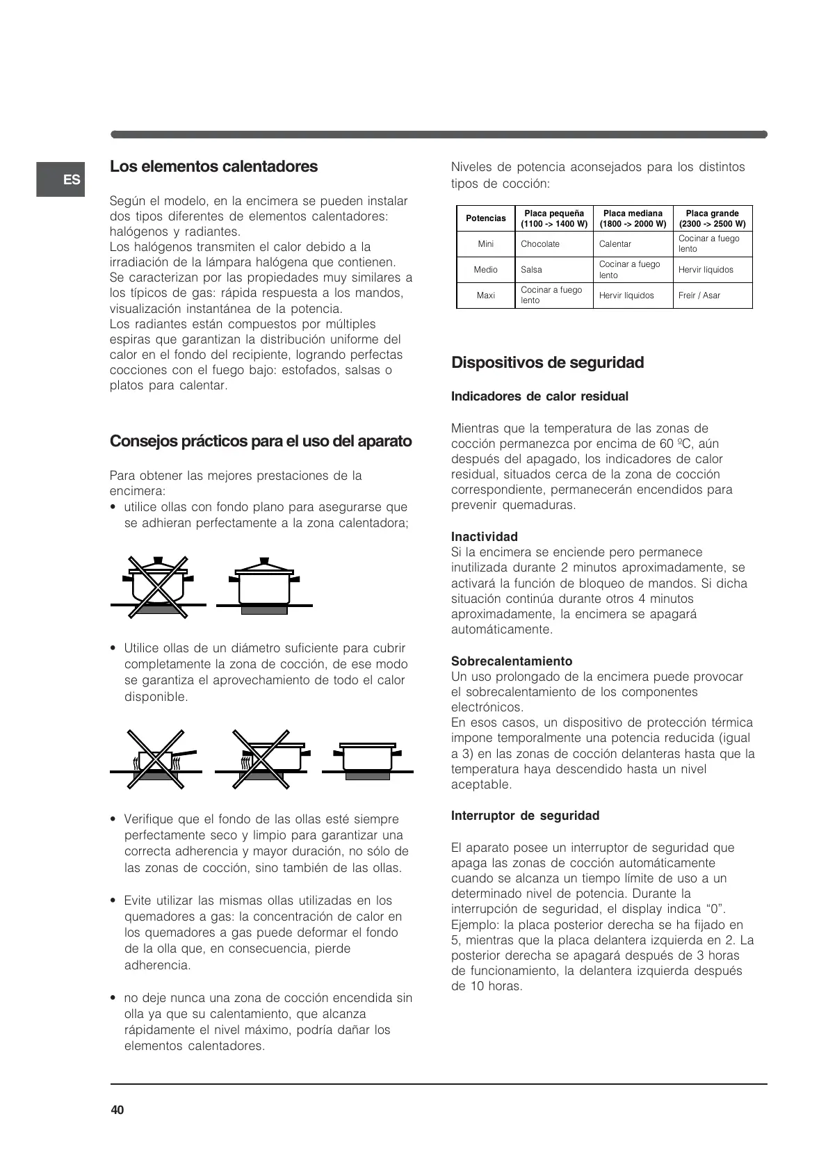 las zonas de cocción, sino también de las ollas.