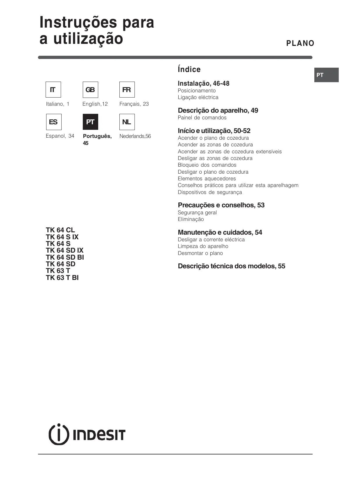 Descrição técnica dos modelos, 55