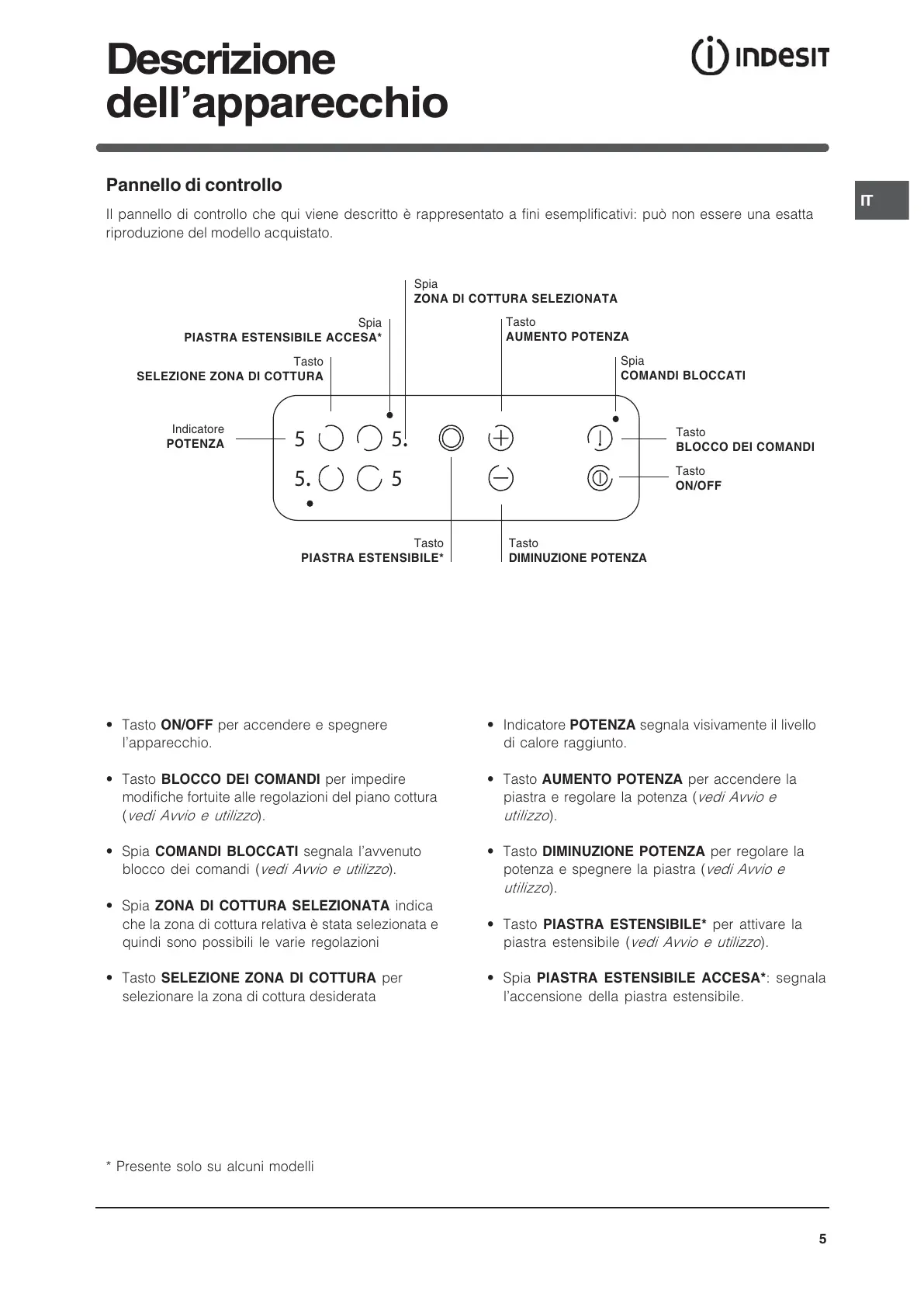 Tasto PIASTRA ESTENSIBILE* per attivare la