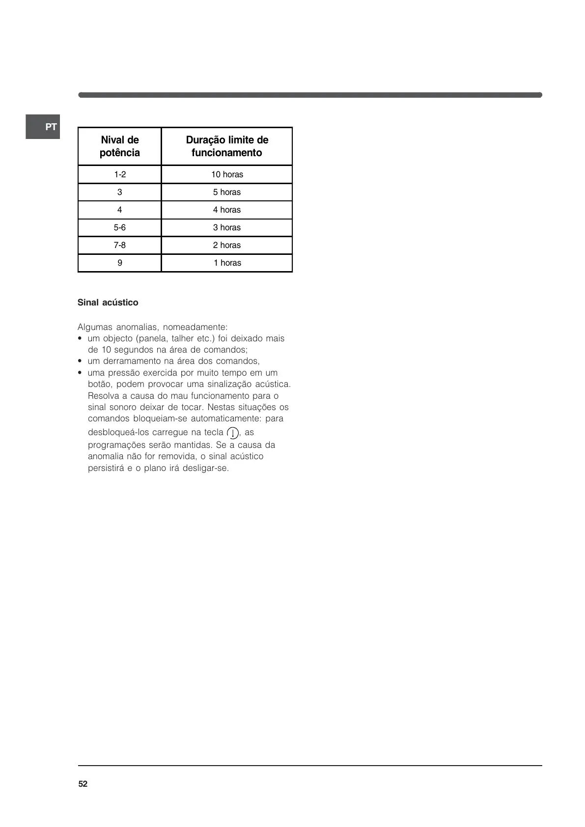 botão, podem provocar uma sinalização acústica.