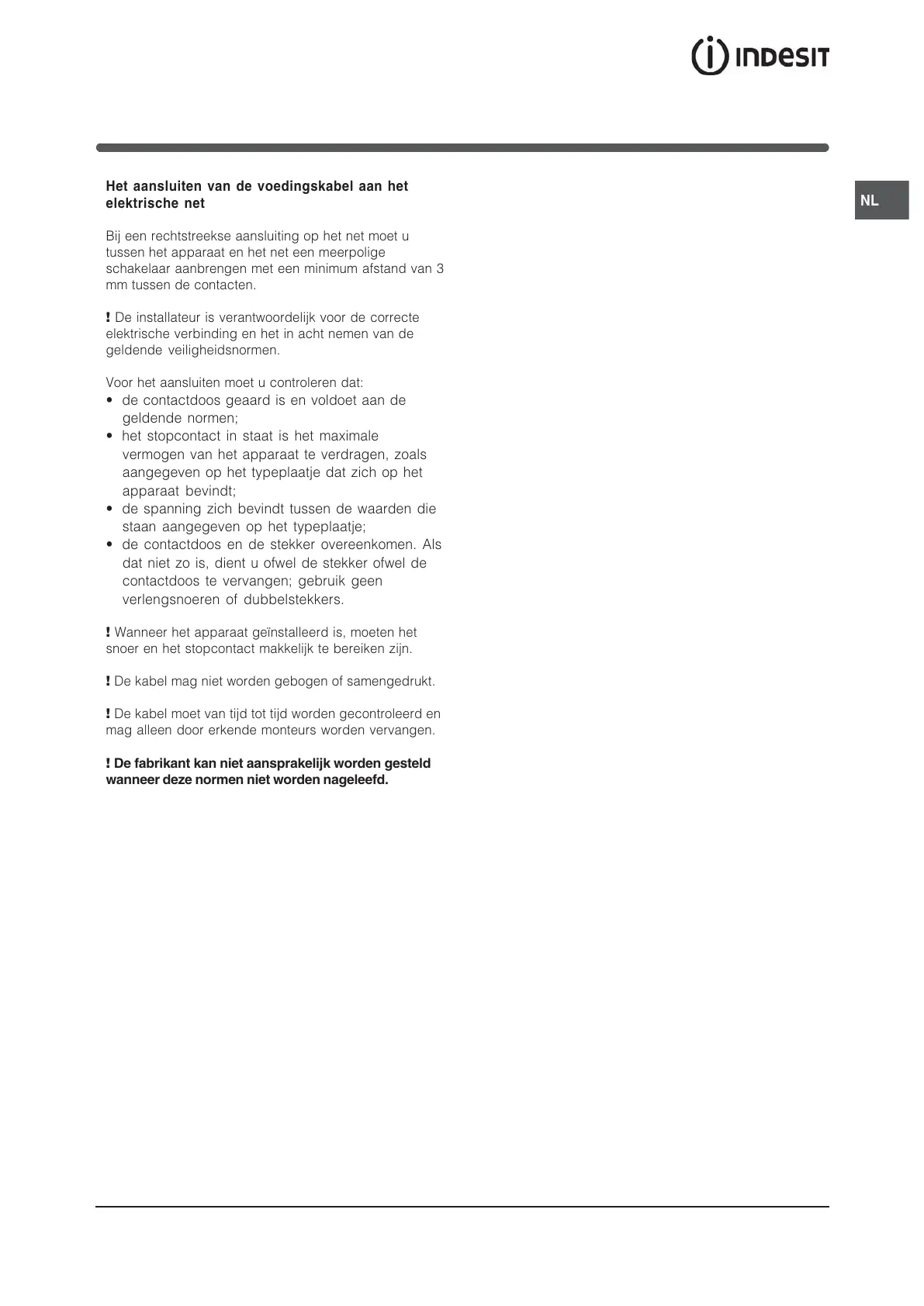 snoer en het stopcontact makkelijk te bereiken zijn.