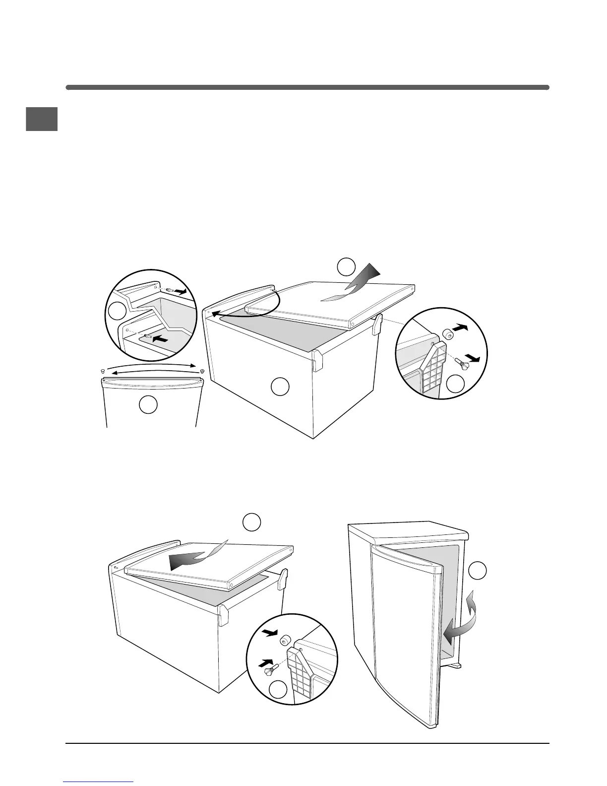 Warning: Before attempting to remove the door, switch off the electrical supply and pull out the mains plug.