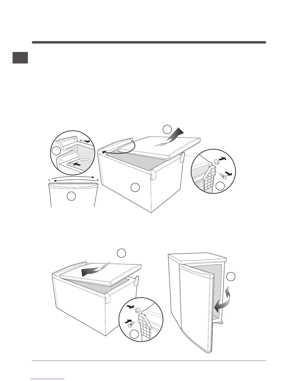 4. Unscrew the hinge pin from the top right hand side and refit the pin into the hole in left hand side.