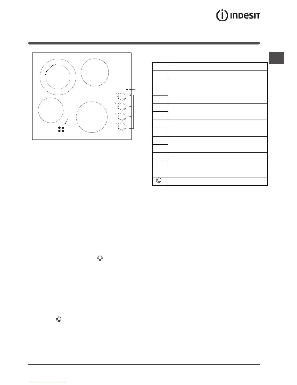 Każde pole grzejne posiada pokrętło (D) do wyboru