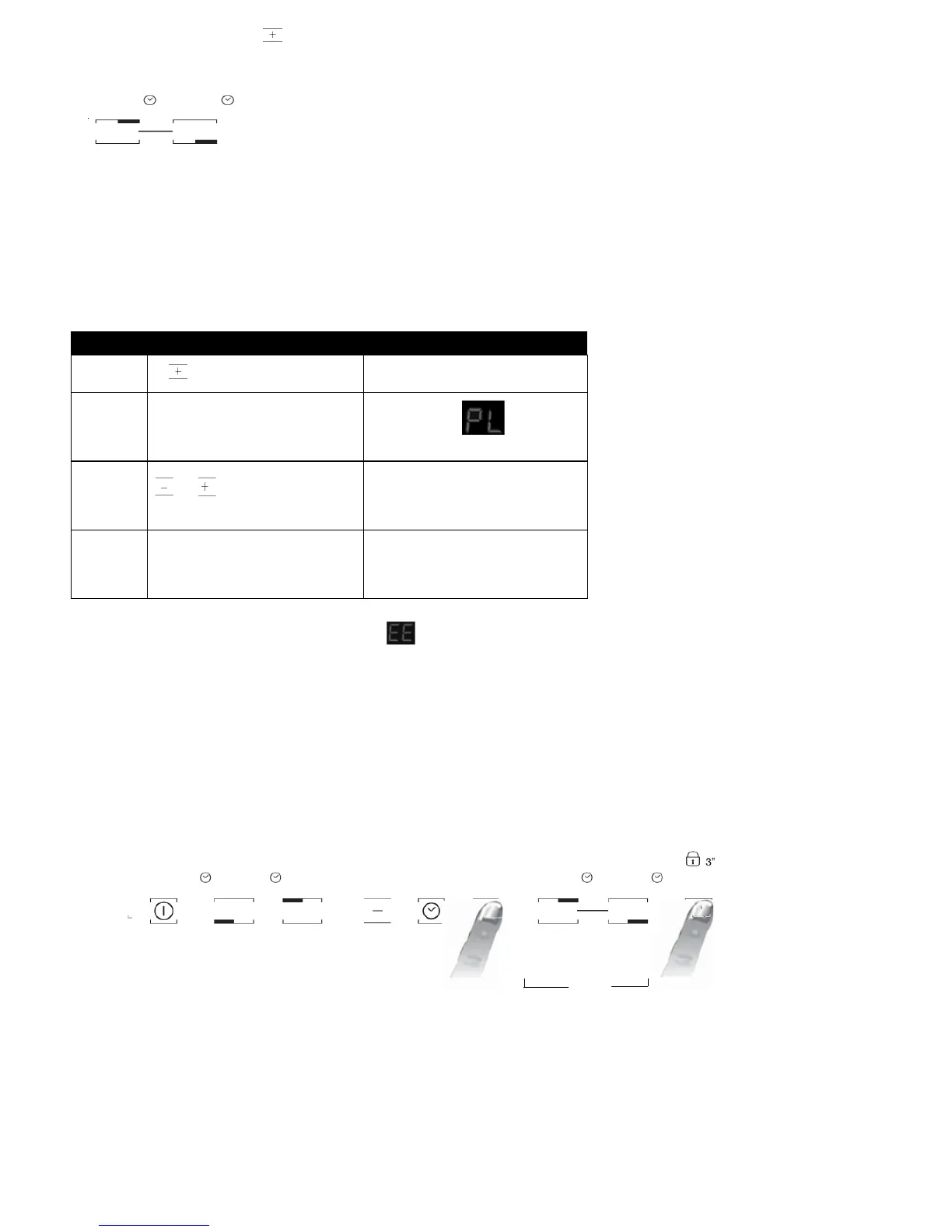 Dopo avere acceso il piano di cottura, tenere premuti contemporaneamente il tasto “+” e il tasto più esterno per almeno tre secondi (“blocco pannello comandi”).