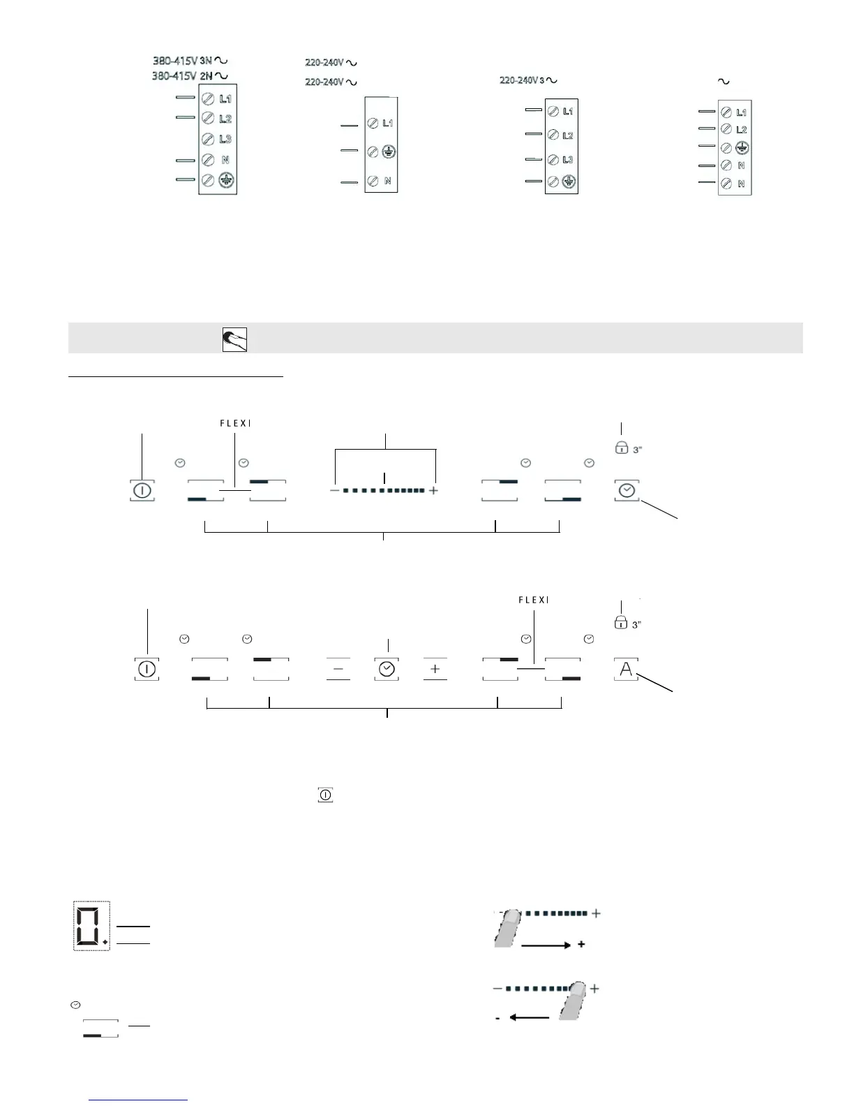 Pour allumer la table, appuyez 2 secondes sur la touche jusqu’à ce que les afficheurs des foyers s’éclairent. Pour éteindre, appuyez sur cette même touche jusqu’à
