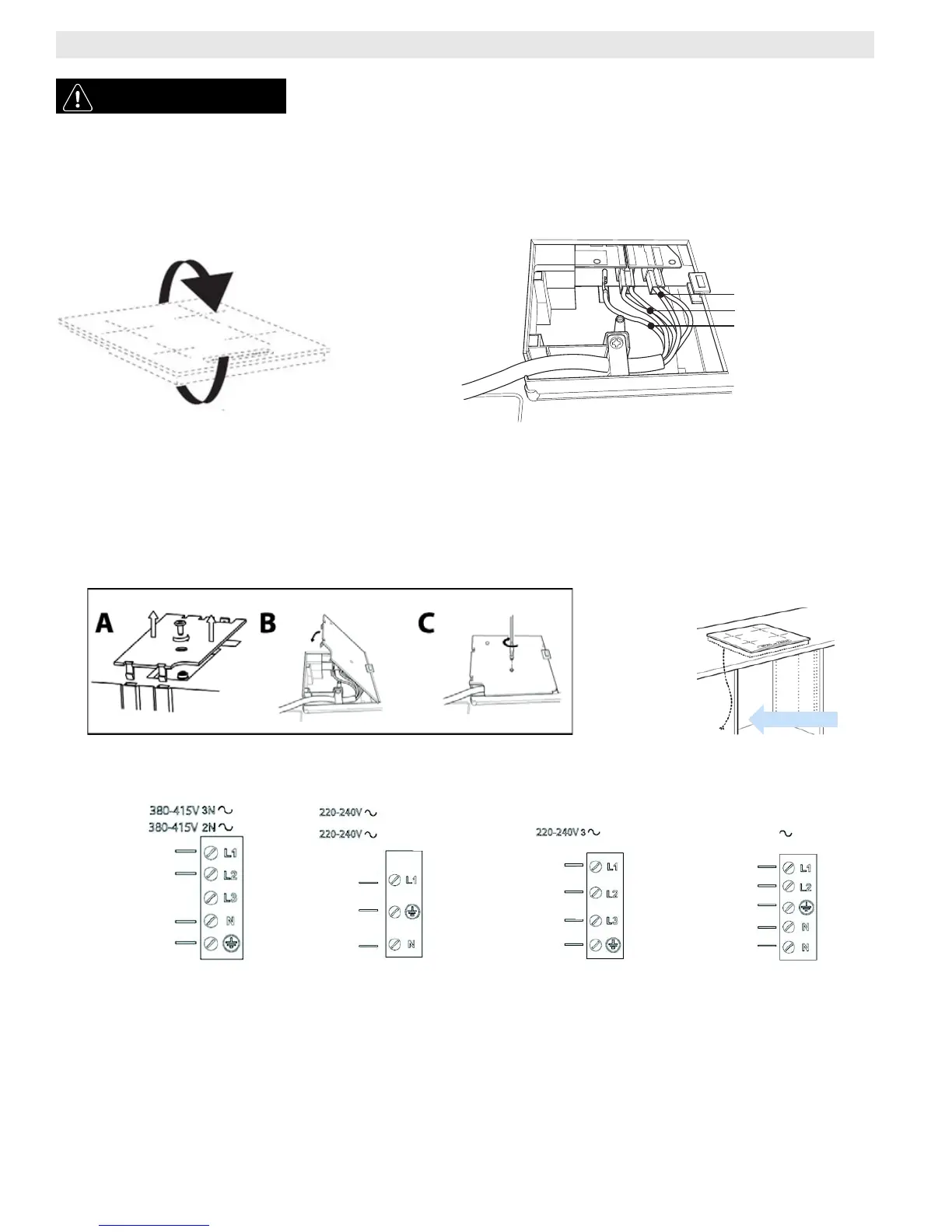 - Przewód zasilający powinien mieć wystarczającą długość, aby umożliwić zdjęcie płyty z blatu.