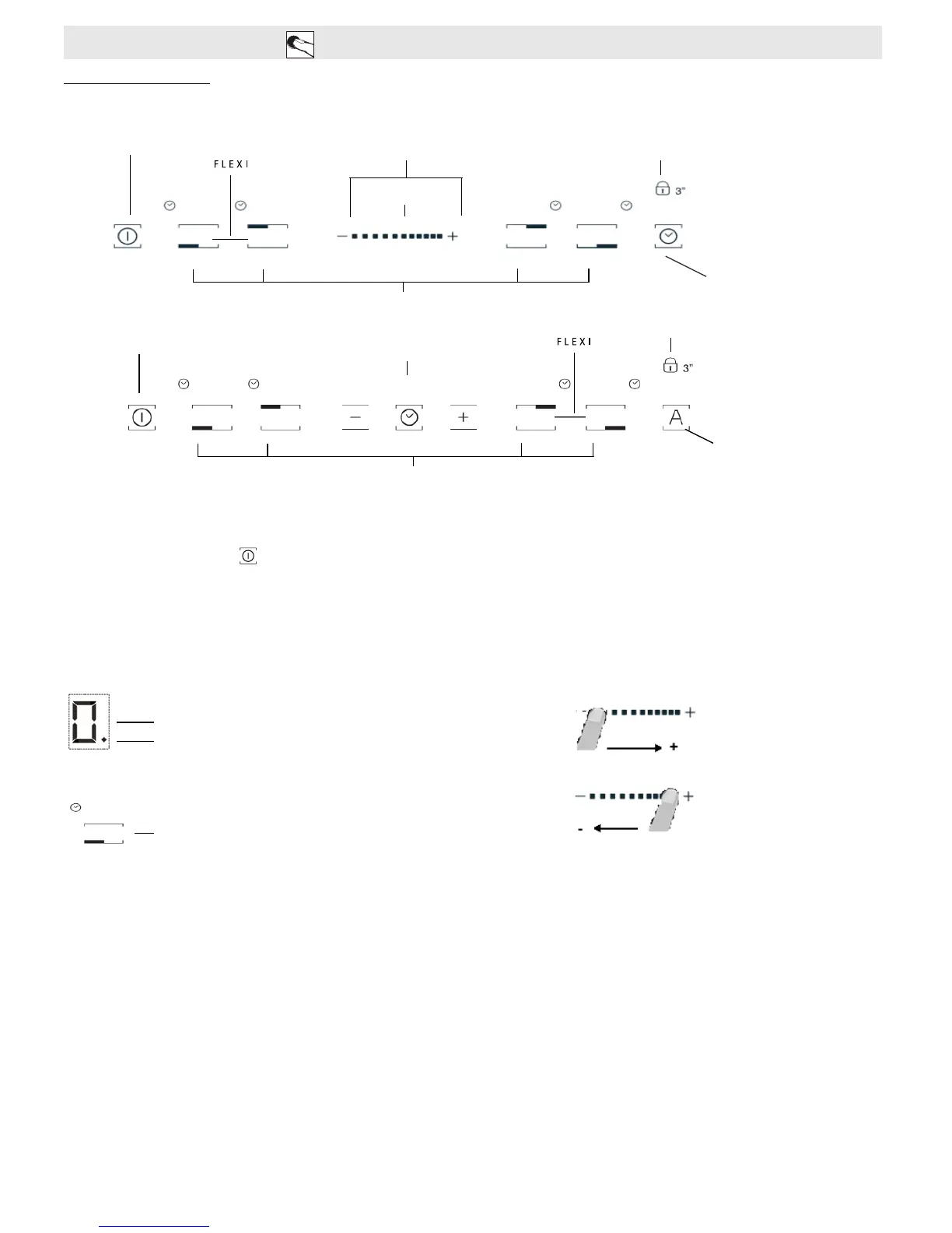Umieścić naczynie na strefie grzewczej, włączając płytę, aktywować wymaganą strefę grzewczą, naciskając odpowiedni przycisk "+". Na wyświetlaczu pojawi się