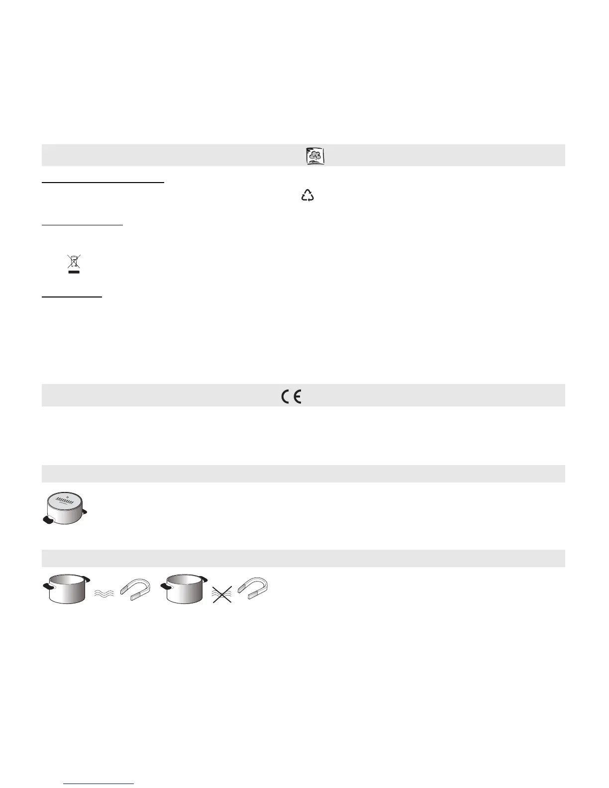 Ke kontrole vhodnosti dna hrnce pro indukční varnou desku použijte magnet: hrnce a pánve bez magnetického dna nejsou k použití vhodné.