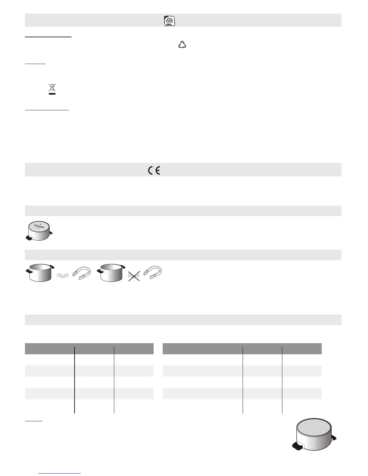 Using suitable pots, the cooking zones cannot be used at temperatures below 10°C.