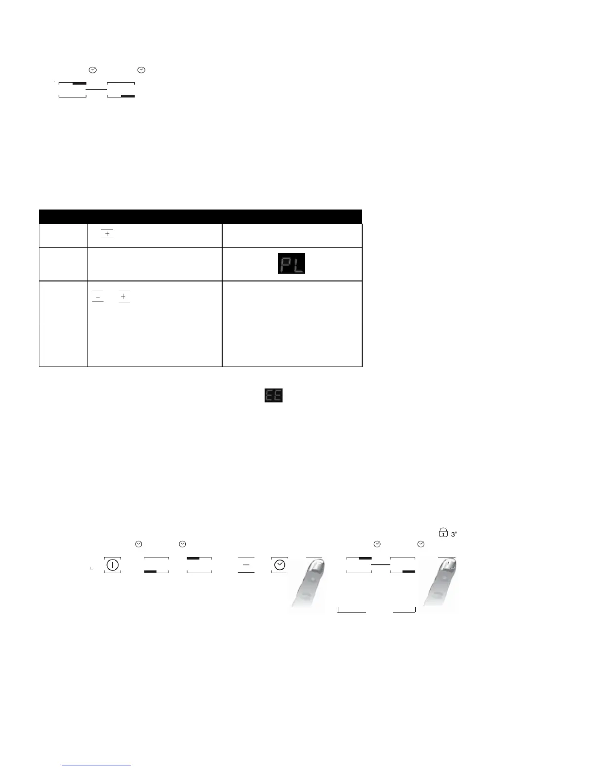 Após ligar a placa, prima e mantenha simultaneamente a tecla "+" e a tecla periférica à direita durante pelo menos três segundos ("bloqueio do painel de controlo").