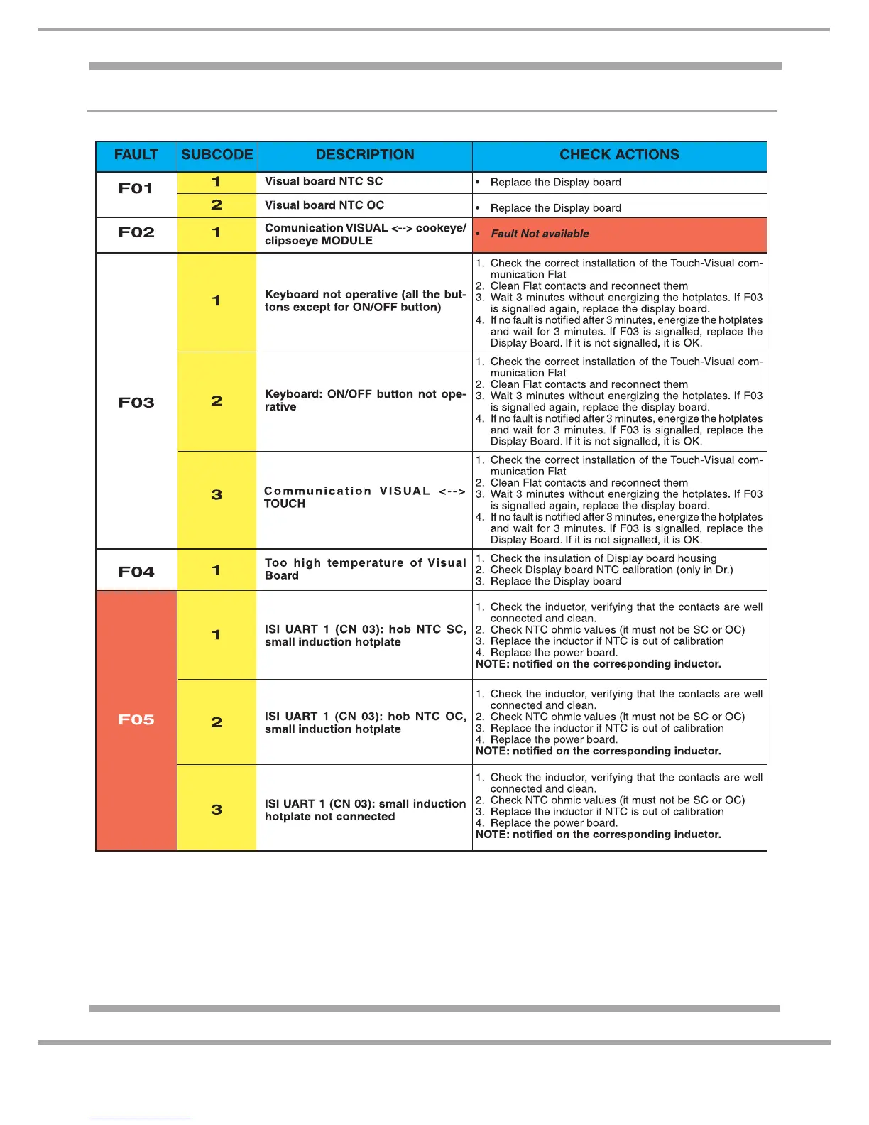 Indesit VIA640C - FAULT CODES; F01; F02; F03