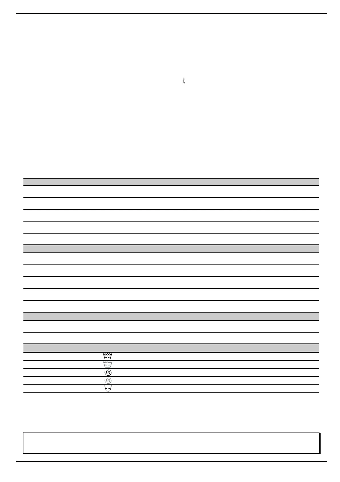 A táblázatban megadott értékek tájékoztató jellegûek, és eltérhetnek a ruhanemû mennyisége és típusa, a hálózati víz hõmérséklete és a szoba