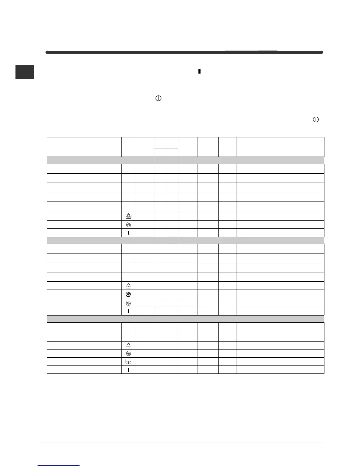 For the description of the Anti-crease function, please see page 9. The information contained in the table is purely