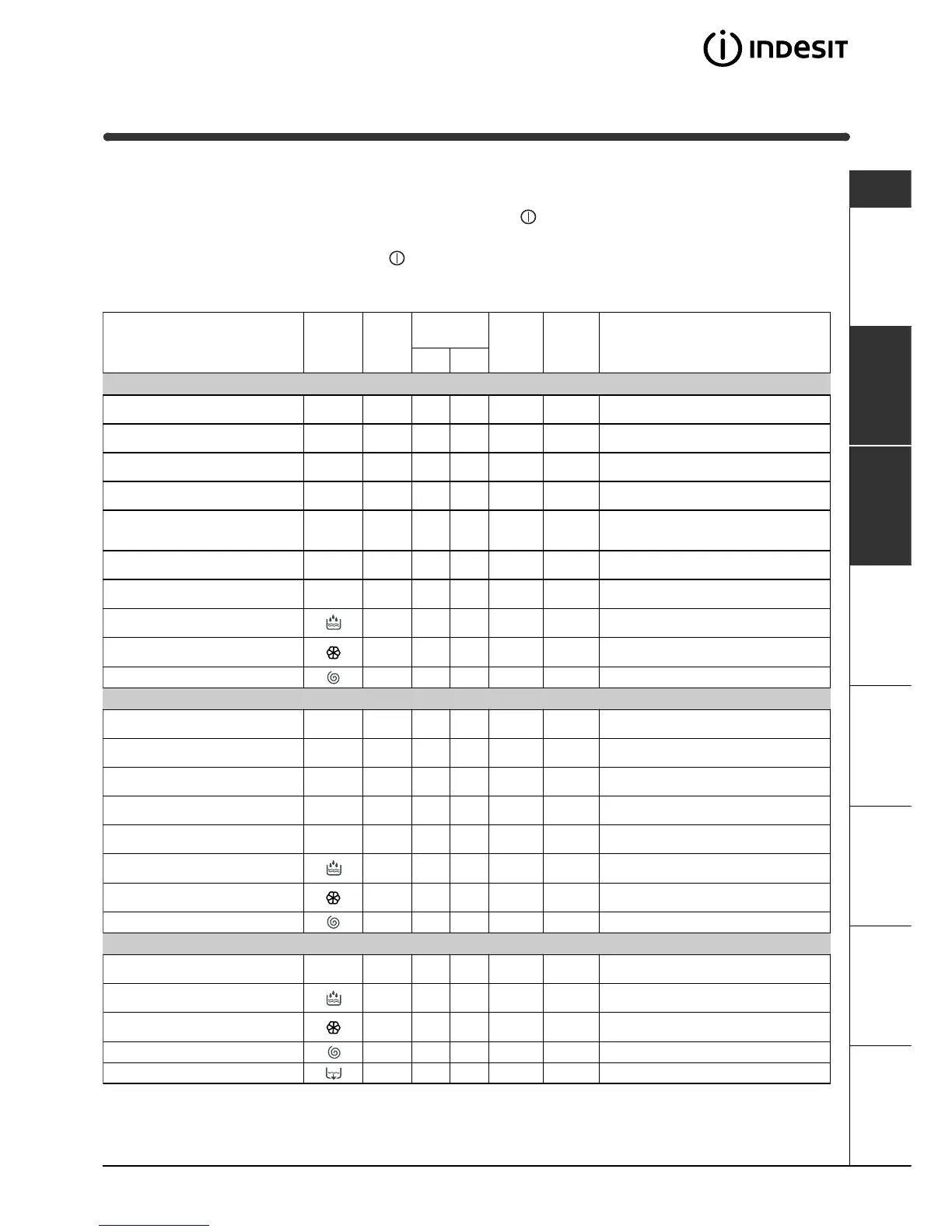 for the description of the Anti-crease function, please see page 8. The information contained in the table is purely indicative.