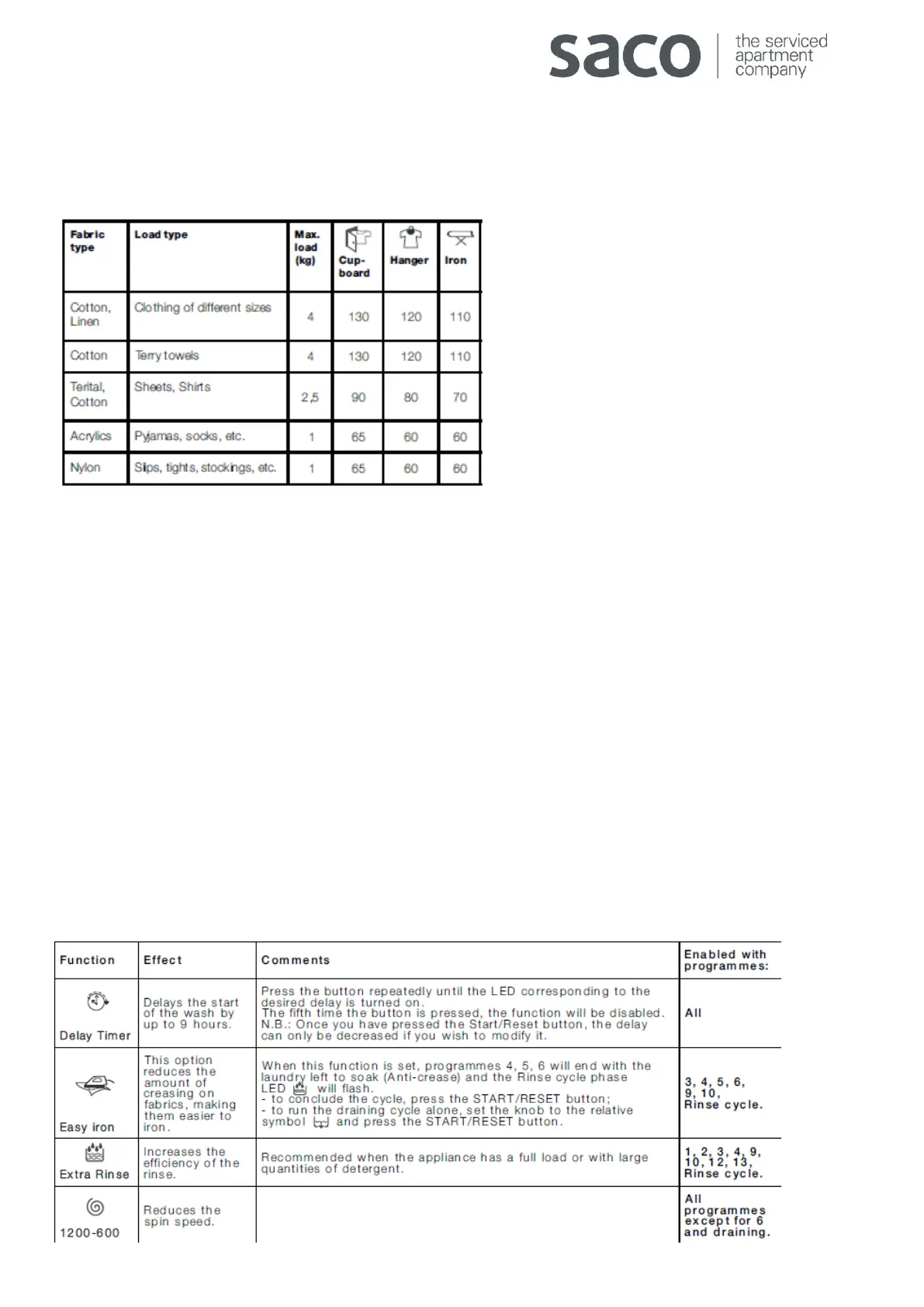 away. Cupboard: Very dry clothes, recommended for towelling and bathrobes).