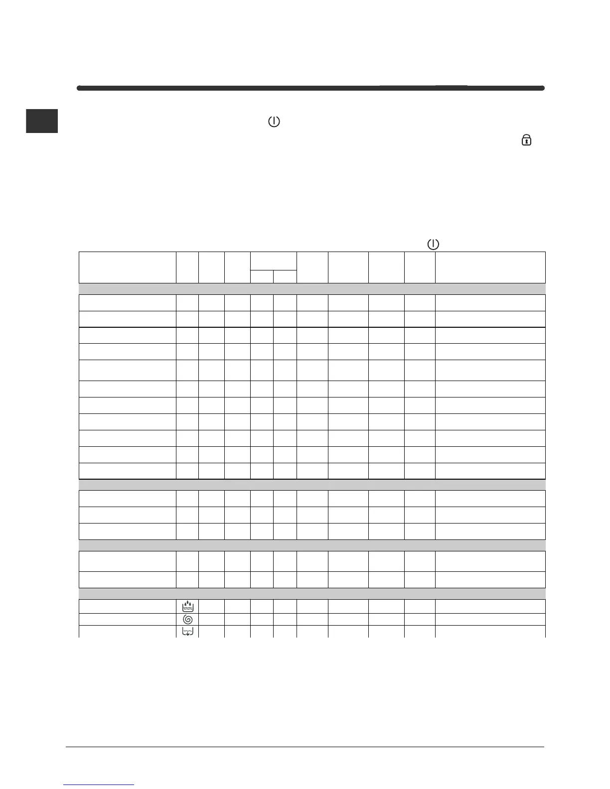 -For the anti-crease function: see Easy iron, opposite page. The information contained in the table is purely indicative.