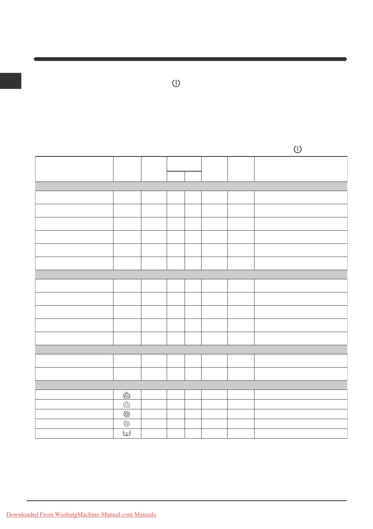 For the anti-crease function, please see page 7. The information contained in the table is purely indicative.