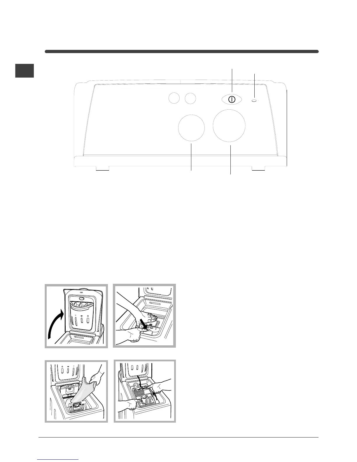 ON/OFF button, to turn the washing machine on