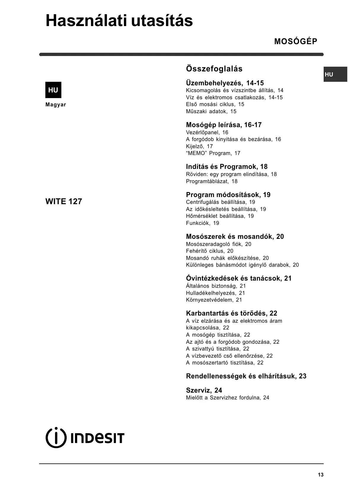 Mosógép leírása, 16-17