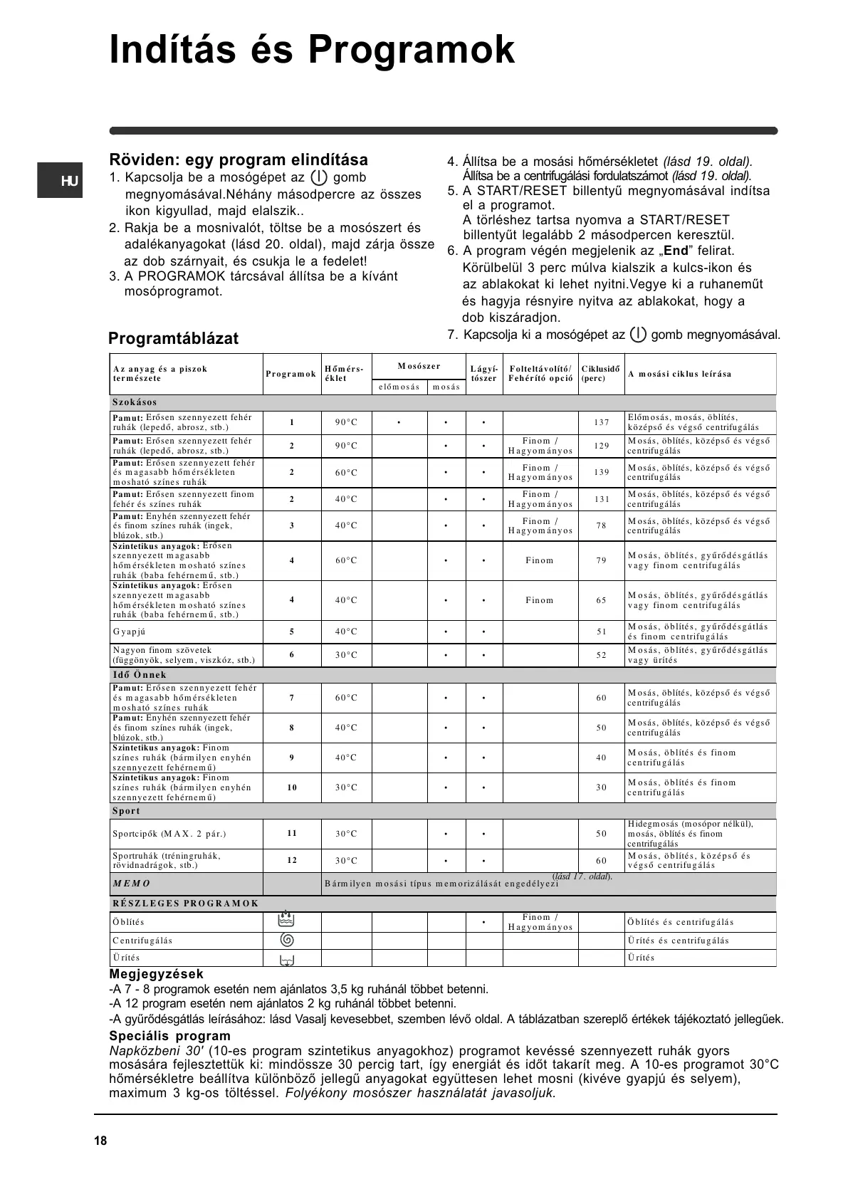 mosására fejlesztettük ki: mindössze 30 percig tart, így energiát és idõt takarít meg. A 10-es programot 30°C
