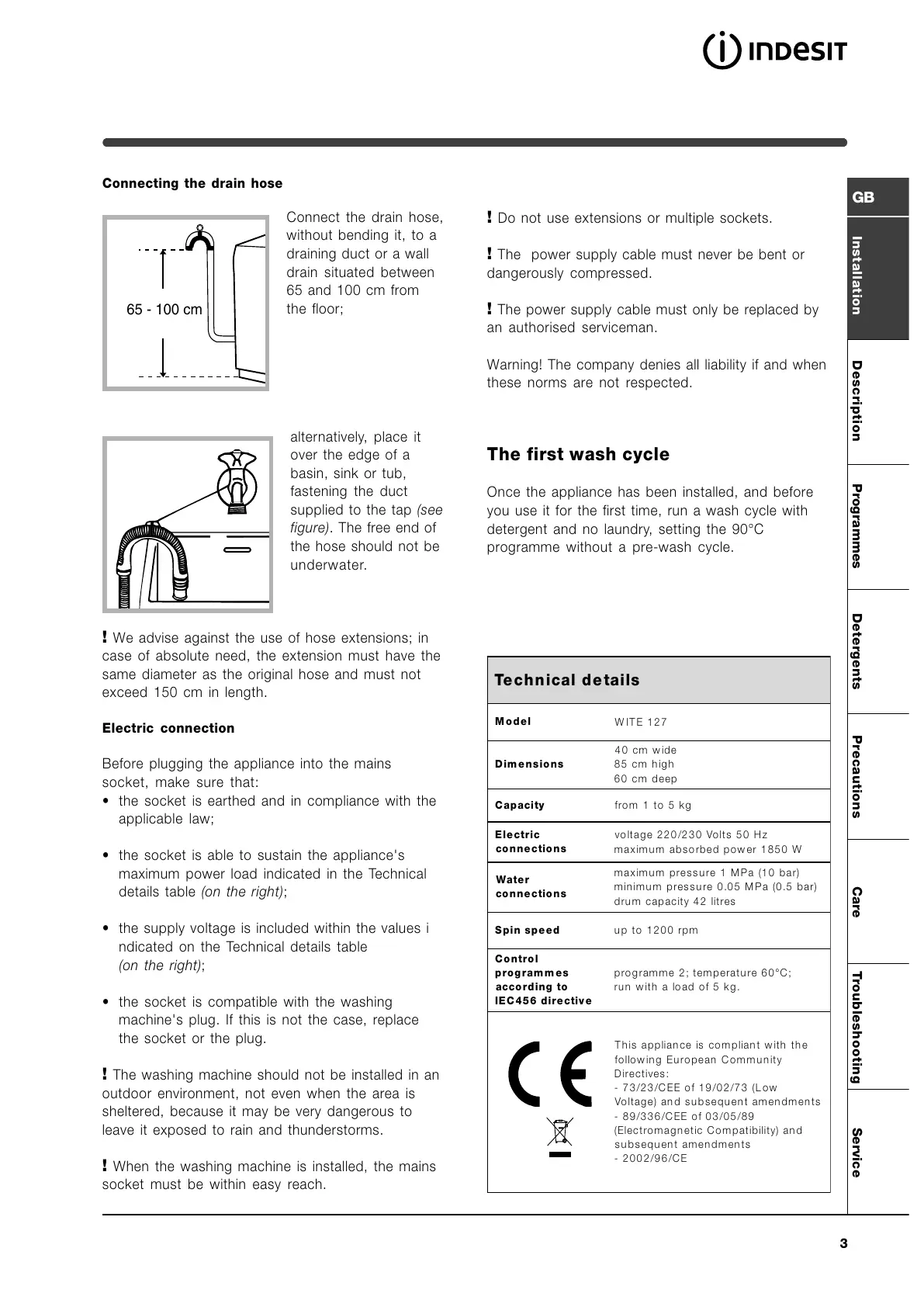 ServiceTroubleshootingPrecautions CareProgrammes DetergentsInstallation Description