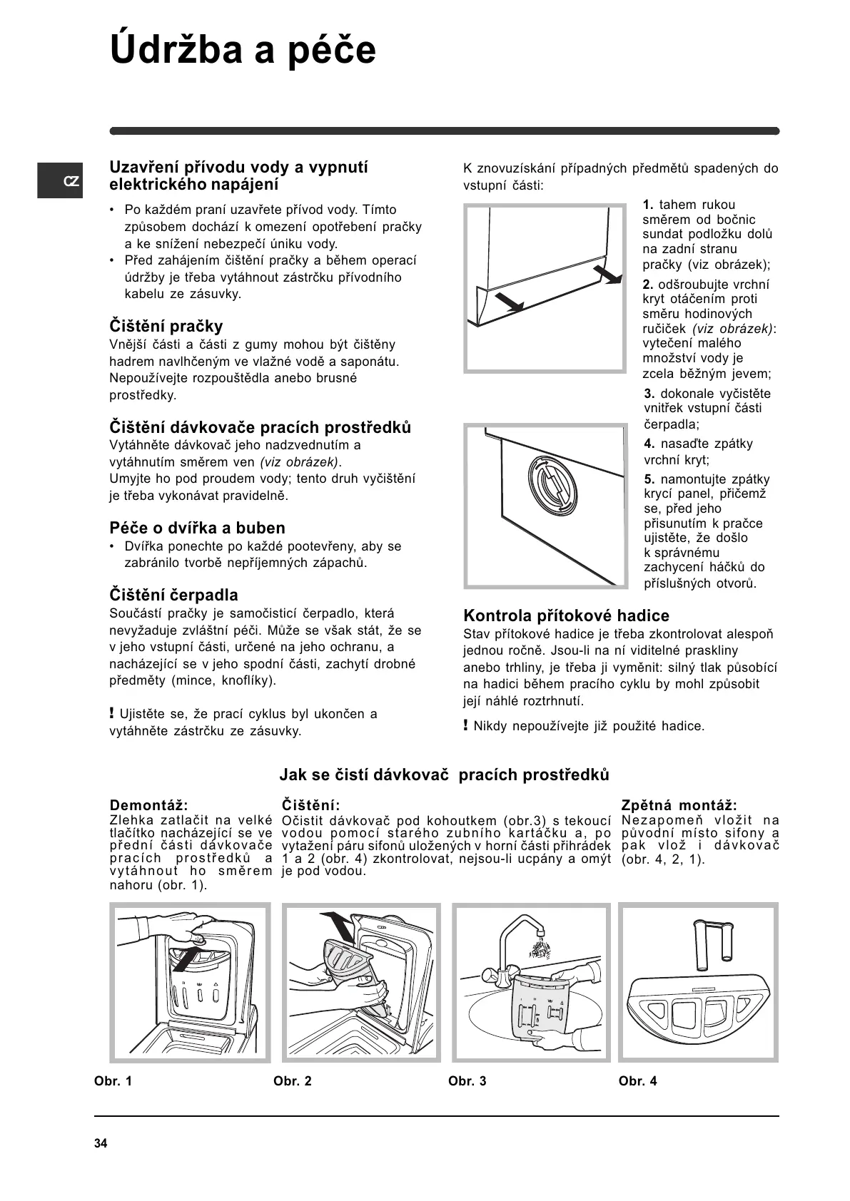 Pøed zahájením èitìní praèky a bìhem operací
