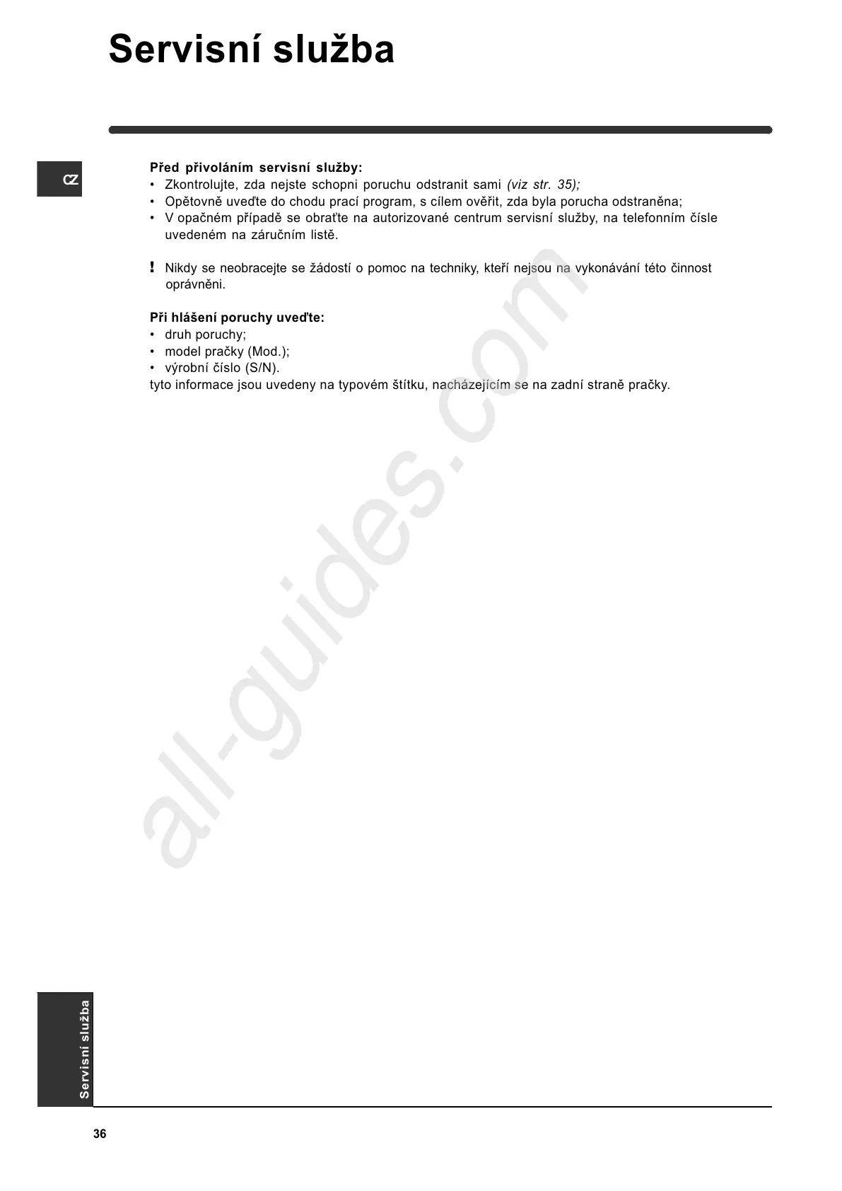 Vopaèném pøípadì se obrate na autorizované centrum servisní sluby, na telefonním èísle