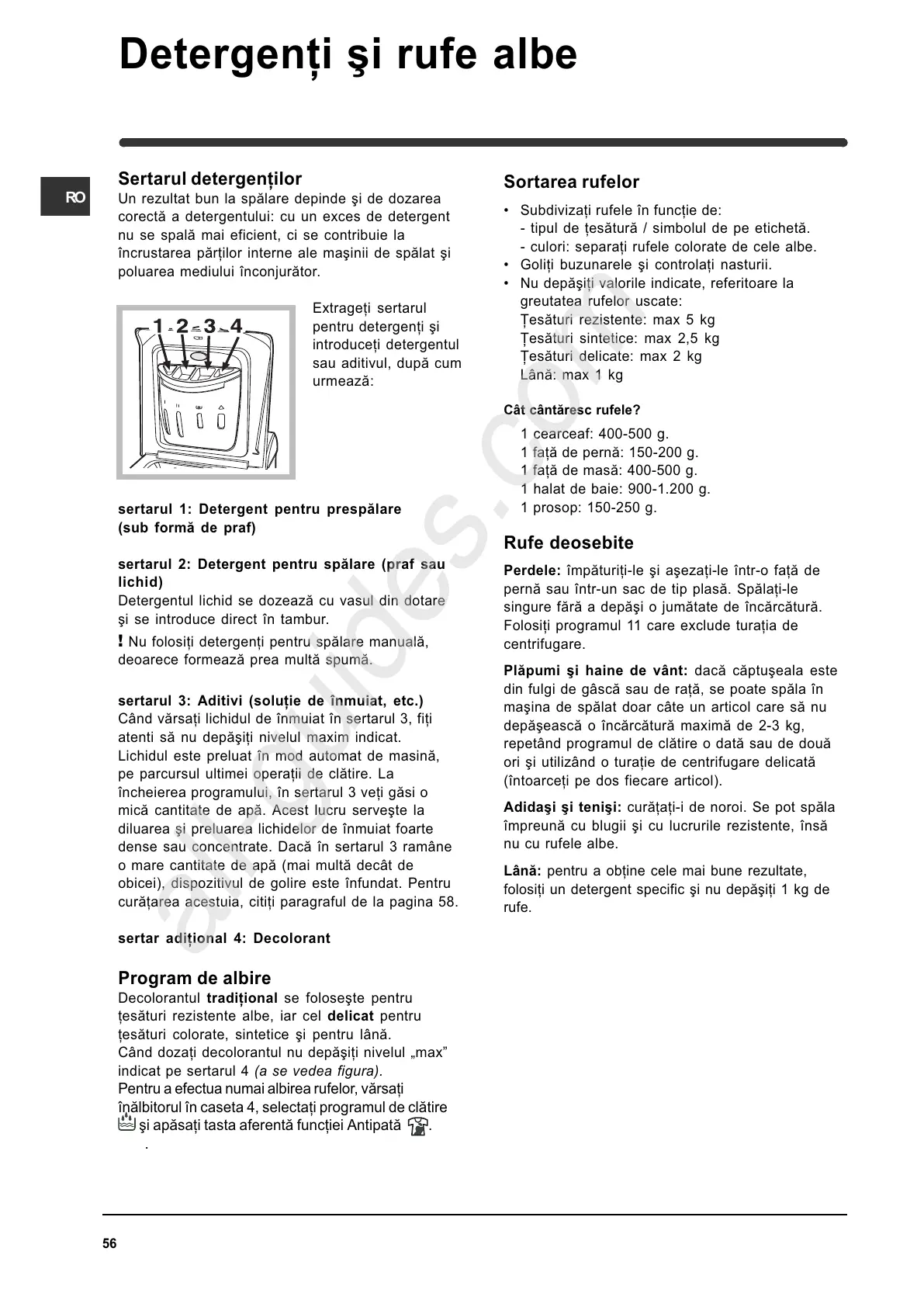 folosiþi un detergent specific ºi nu depãºiþi 1 kg de