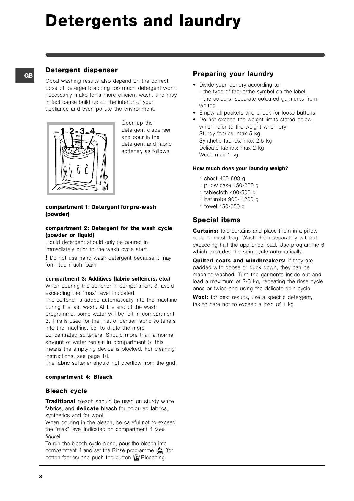 fabrics, and delicate bleach for coloured fabrics,
