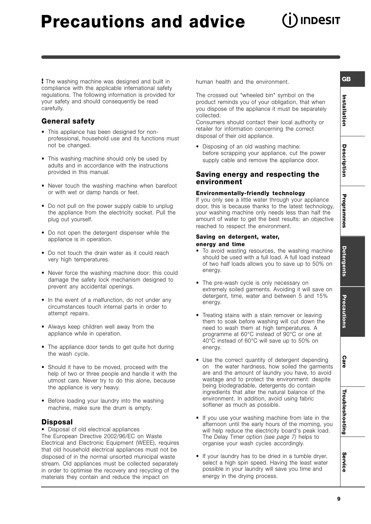 ServiceTroubleshootingPrecautions CareProgrammes DetergentsInstallation Description