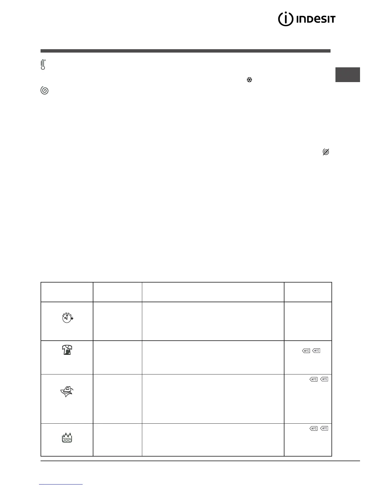 Выбор температуры стирки производится при помощи рукоятки ТЕМПЕРАТУРА (см. Таблицу программ на стр. 18).