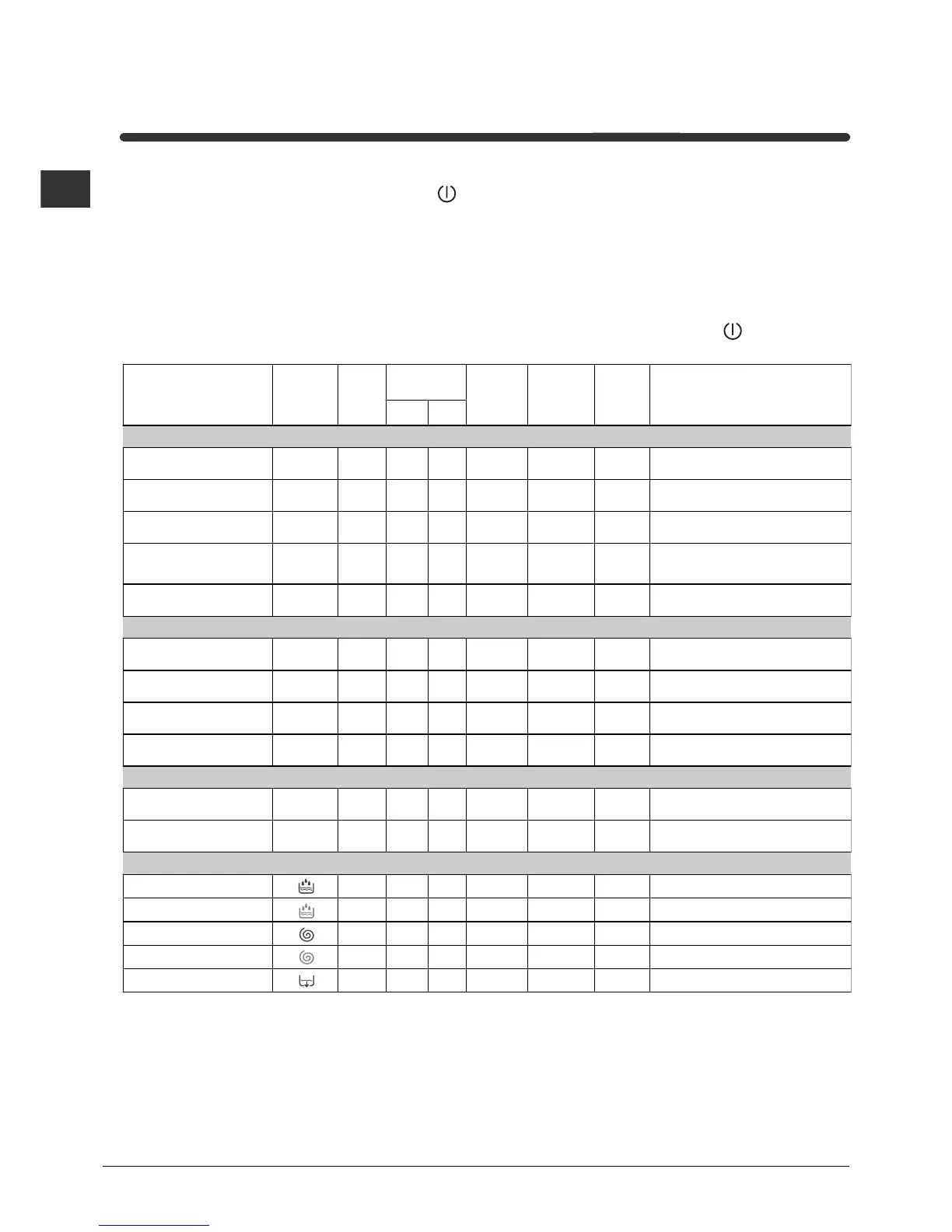 For the anti-crease function: see Easy iron, opposite page. The information contained in the table is purely indicative.