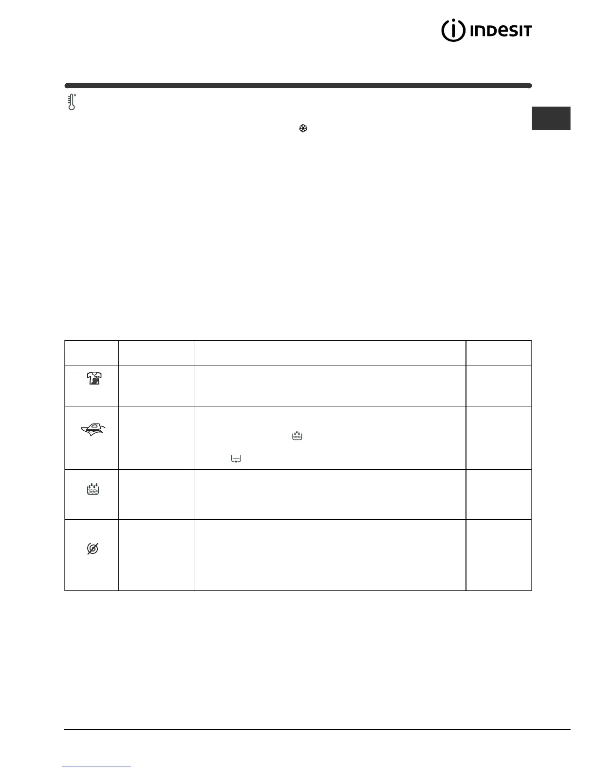 Turn the TEMPERATURE knob to set the wash temperature (see Programme table on page 6).