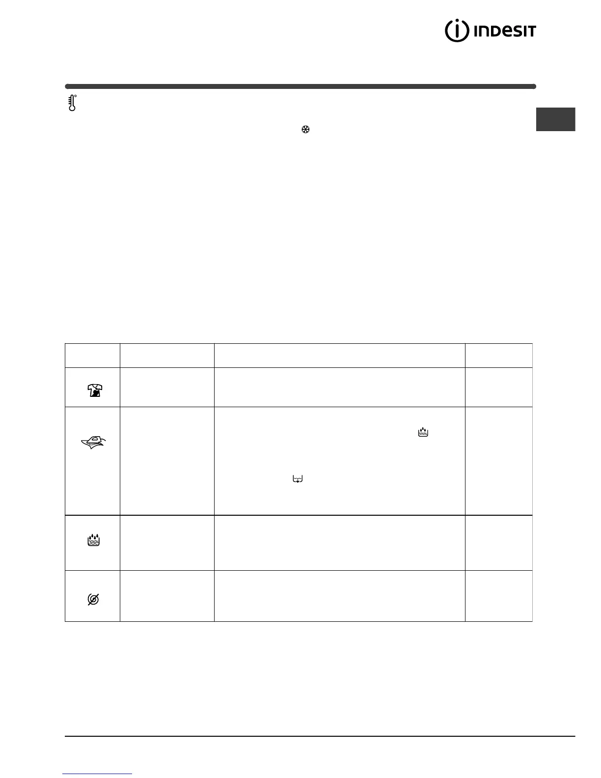 Turn the TEMPERATURE knob to set the wash temperature (see Programme table on page 6).