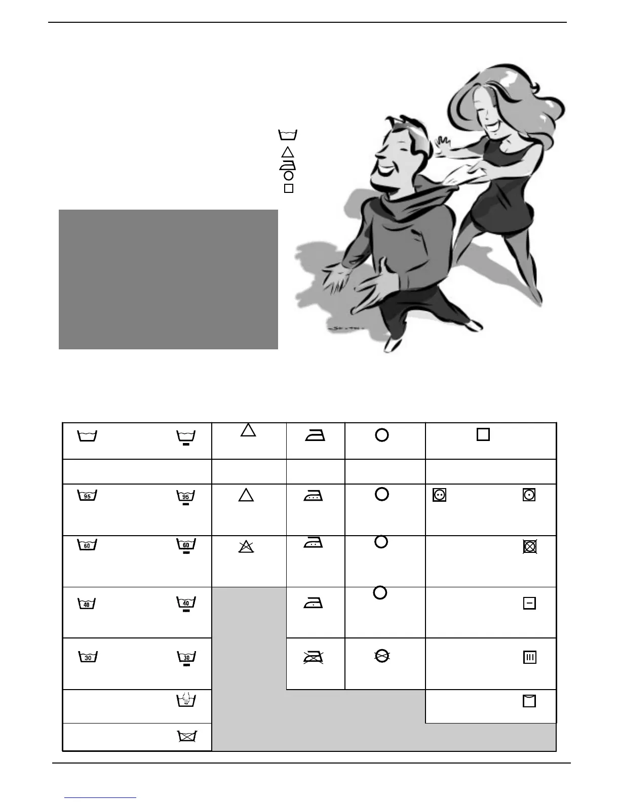 Javel Repassage Nettoyage à sec Séchage