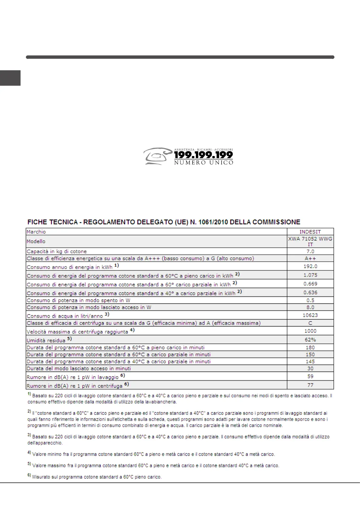 te a variazione da parte dell’operatore telefonico; per maggiori informazioni consultare il sito http://www.indesit.com/indesit/