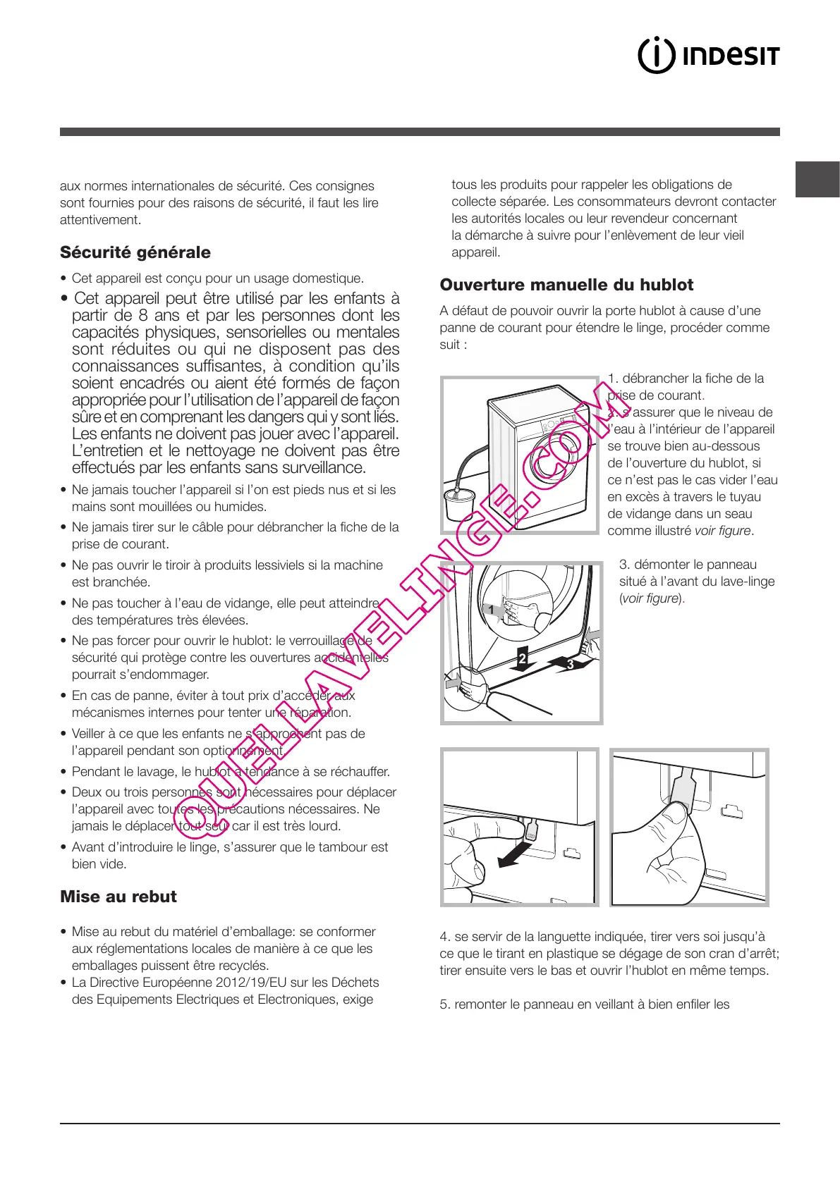 • Ne pas forcer pour ouvrir le hublot: le verrouillage de