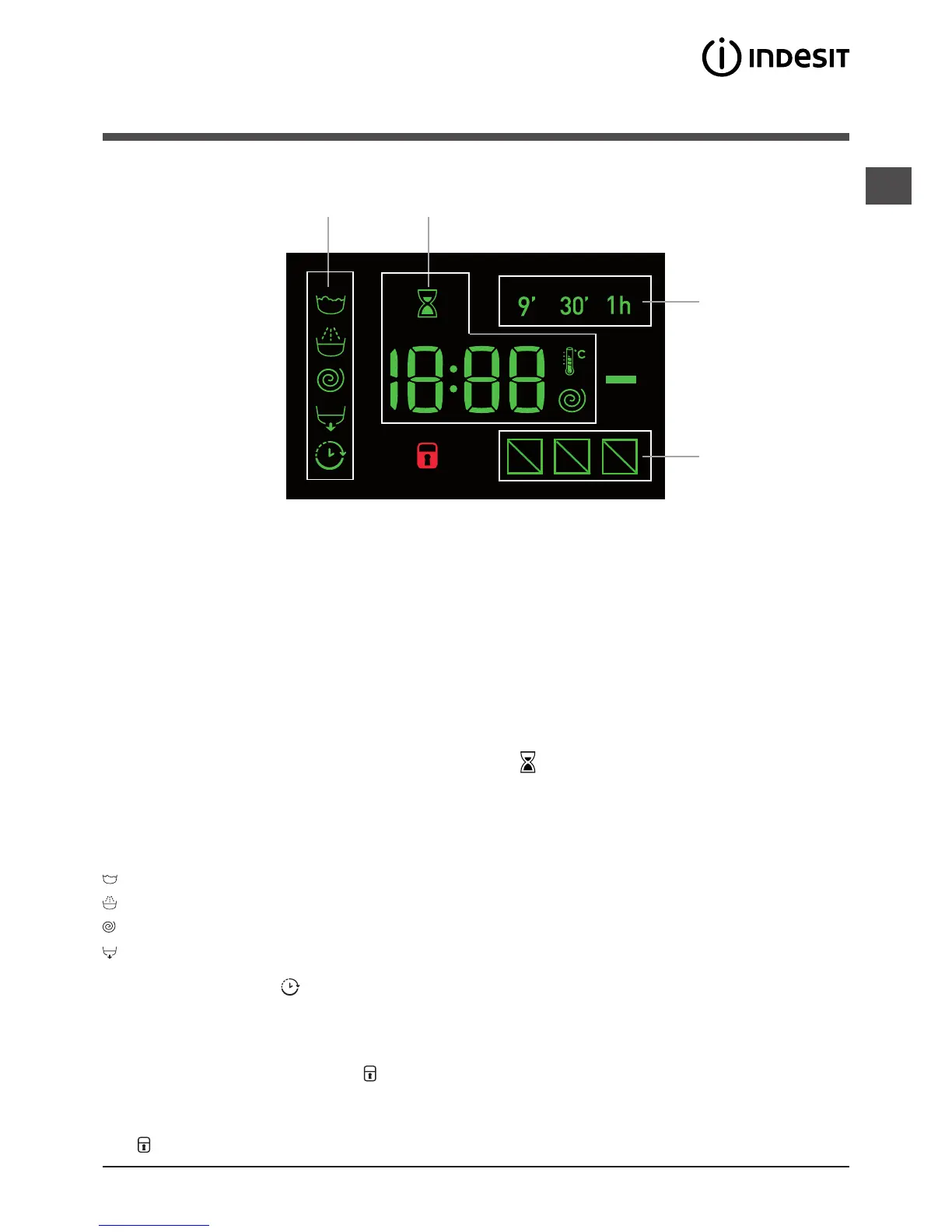 В сектор B ще се изобразят “фазите на пране”, предвидени за избрания цикъл, а при включена програма се