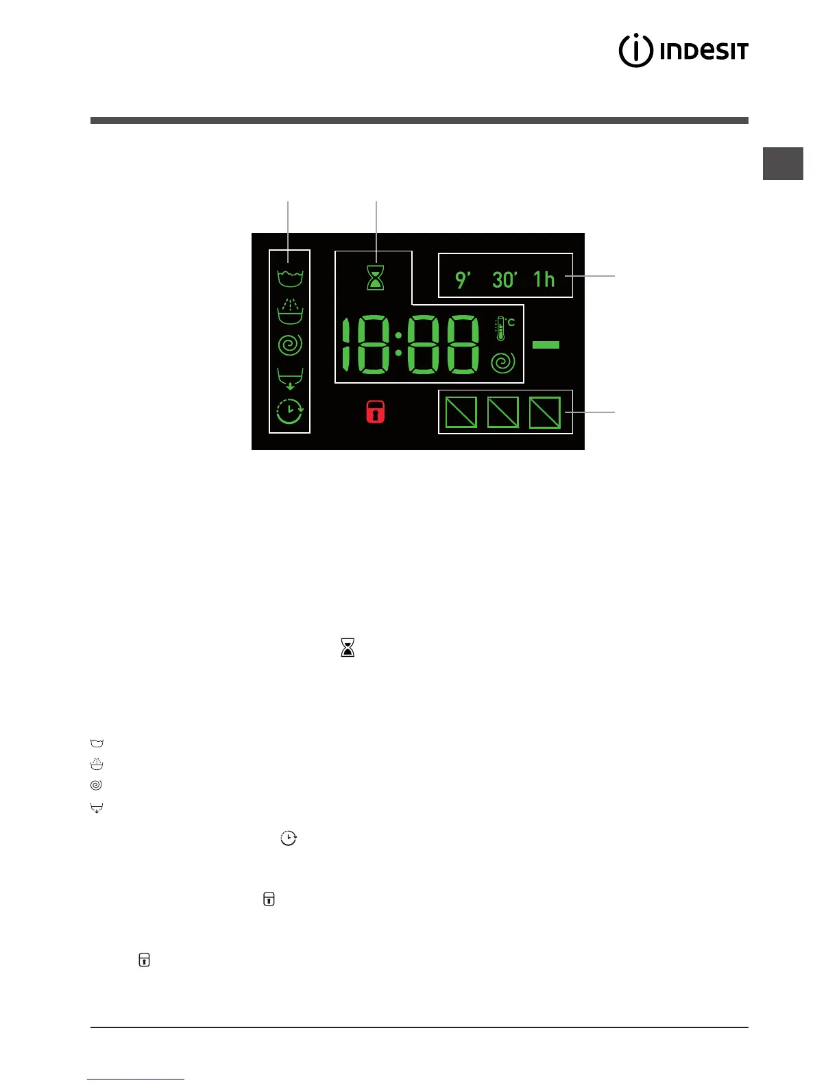 Rozsvícený symbol poukazuje na zajištění dvířek. Aby se předešlo poškození, před otevřením dvířek je třeba vyčkat na