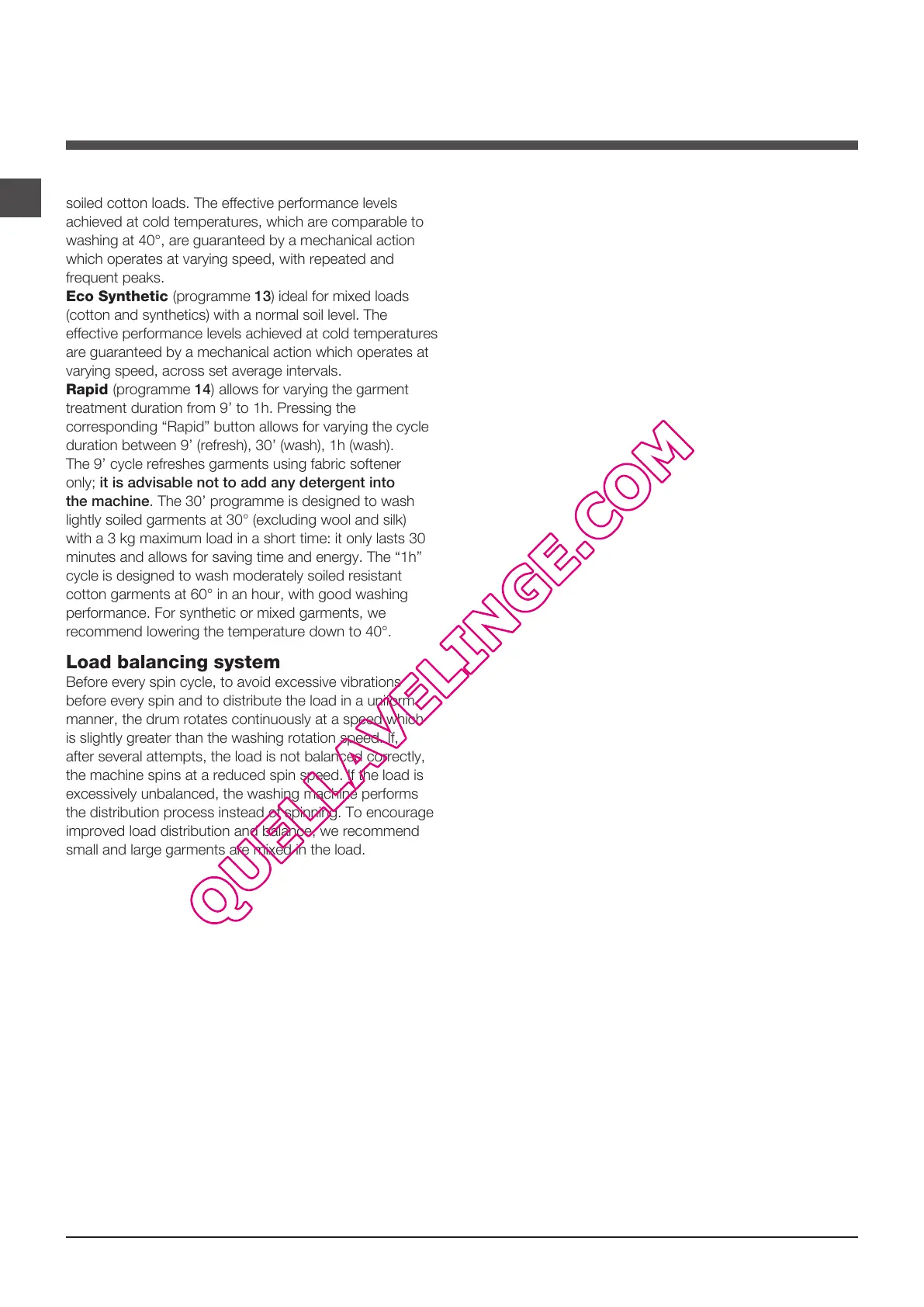 the machine. The 30’ programme is designed to wash