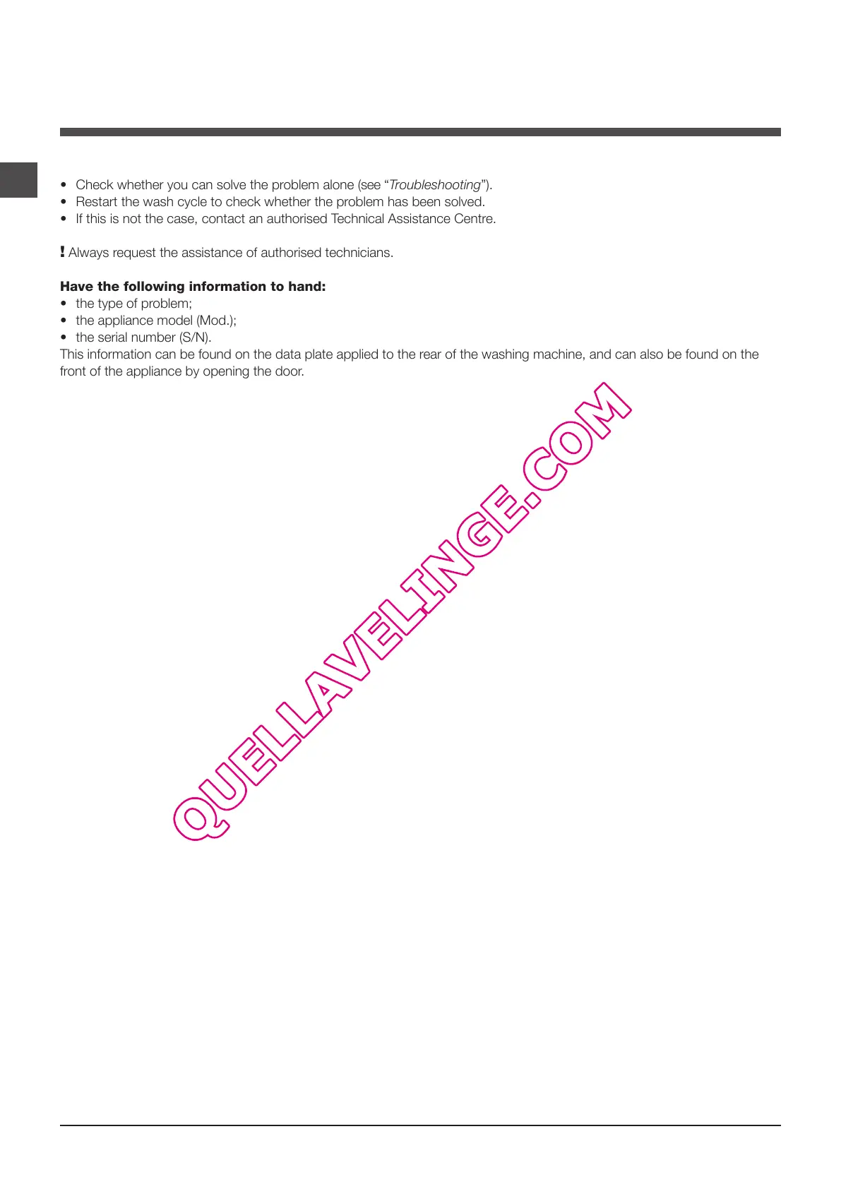 • If this is not the case, contact an authorised Technical Assistance Centre.