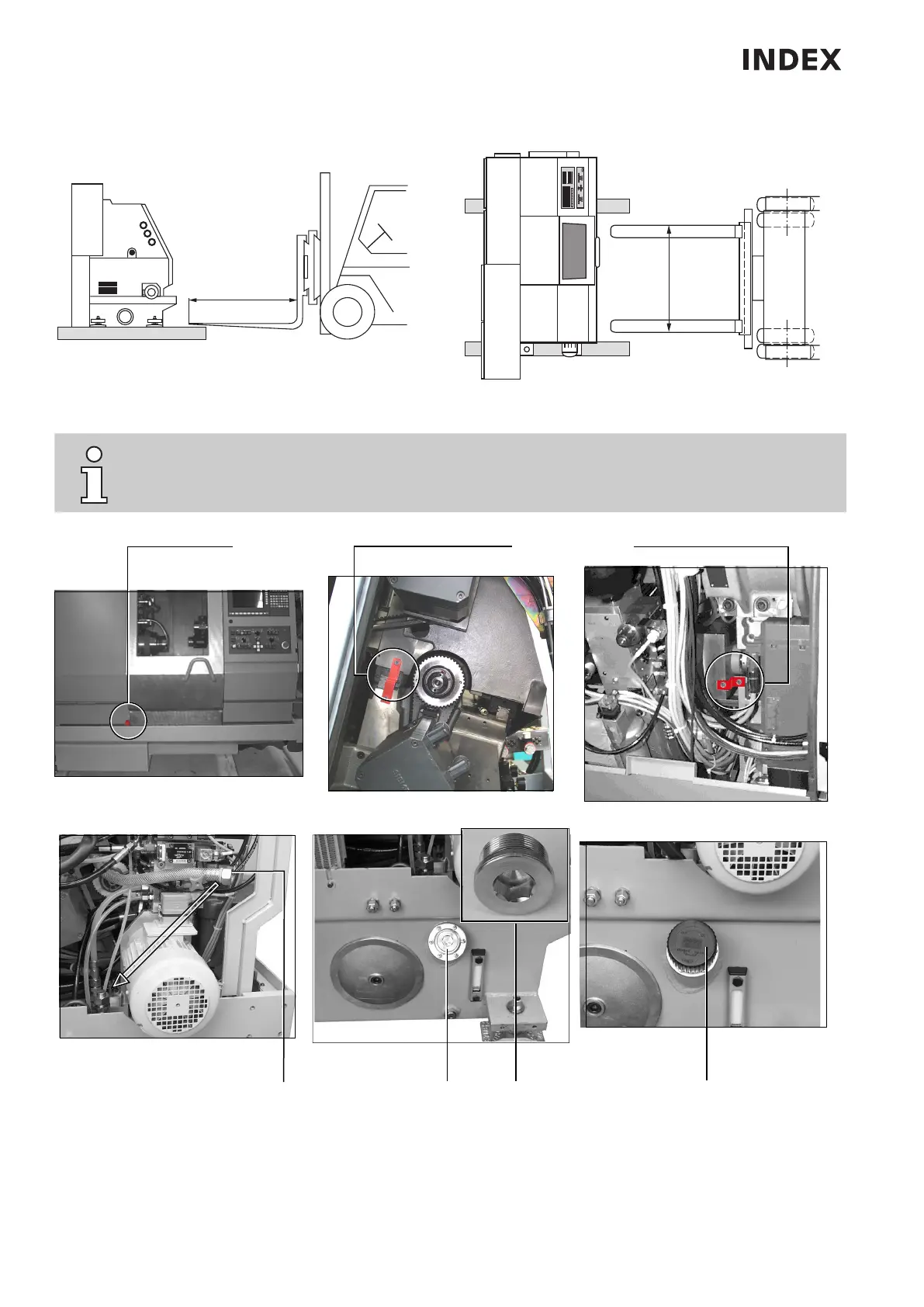 Transport of the machine by fork lift truck