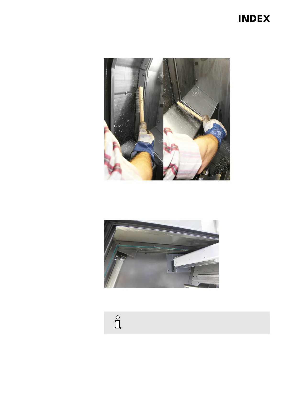 Remove small chips and chip accumulations on the inside of the work area
