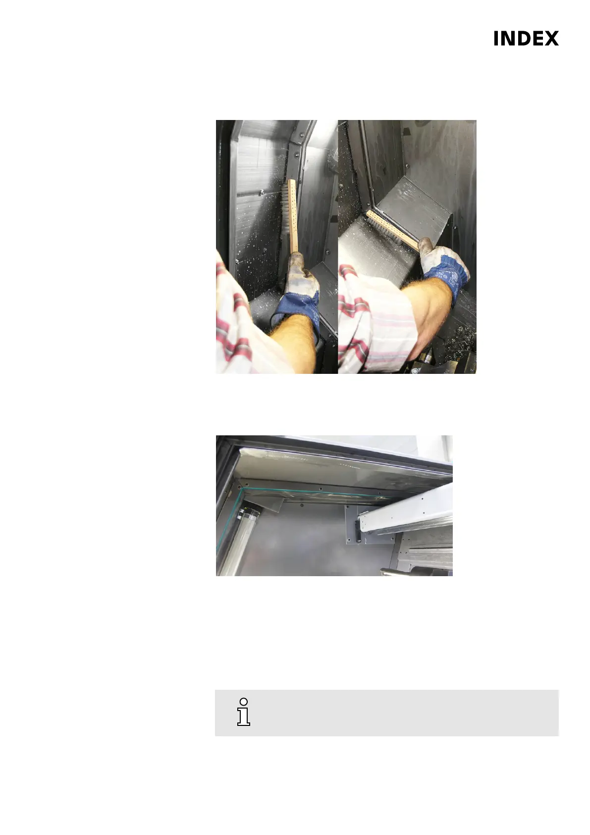 Remove large chips on the inside of the work area door from top to bottom. Use