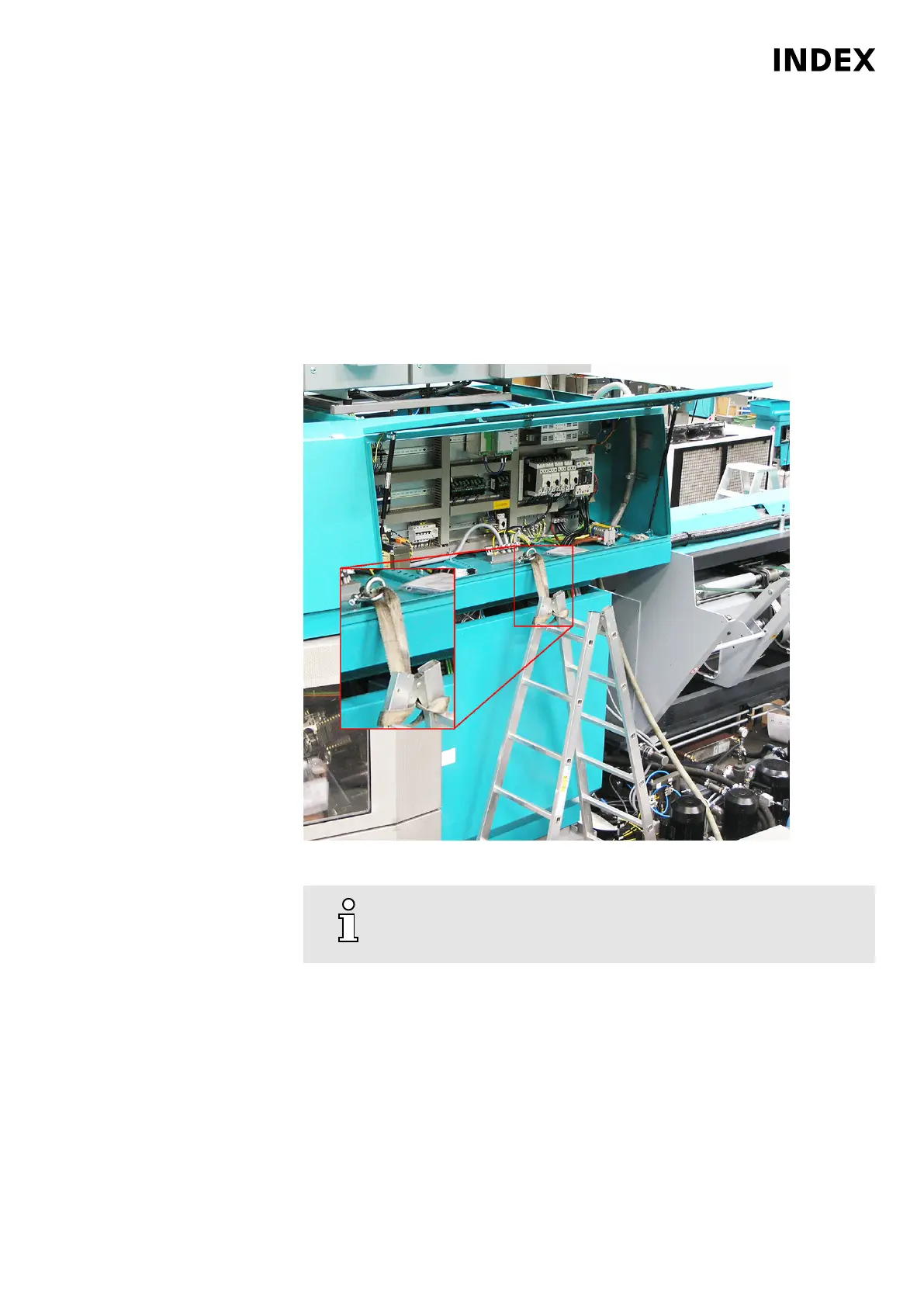 Additional eyelets can be screwed in, in the region of the control cabinet. Various