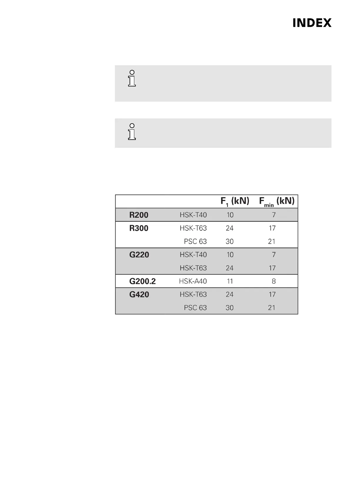 listed in the table are based on DIN 69063-1 for HSK and ISO
