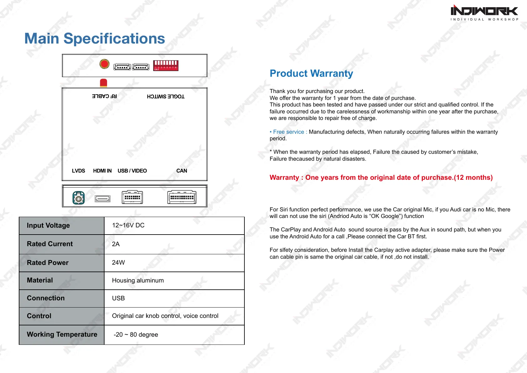 For slfety consideration, before Install the Carplay active adapter, please make sure the Power