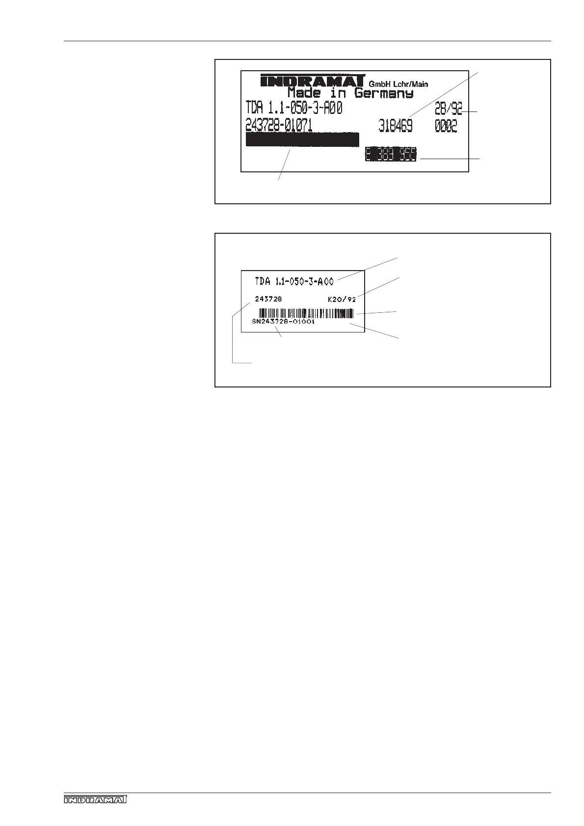 Fig. 25: Rating plate TDA 1 (located on the front panel, example)